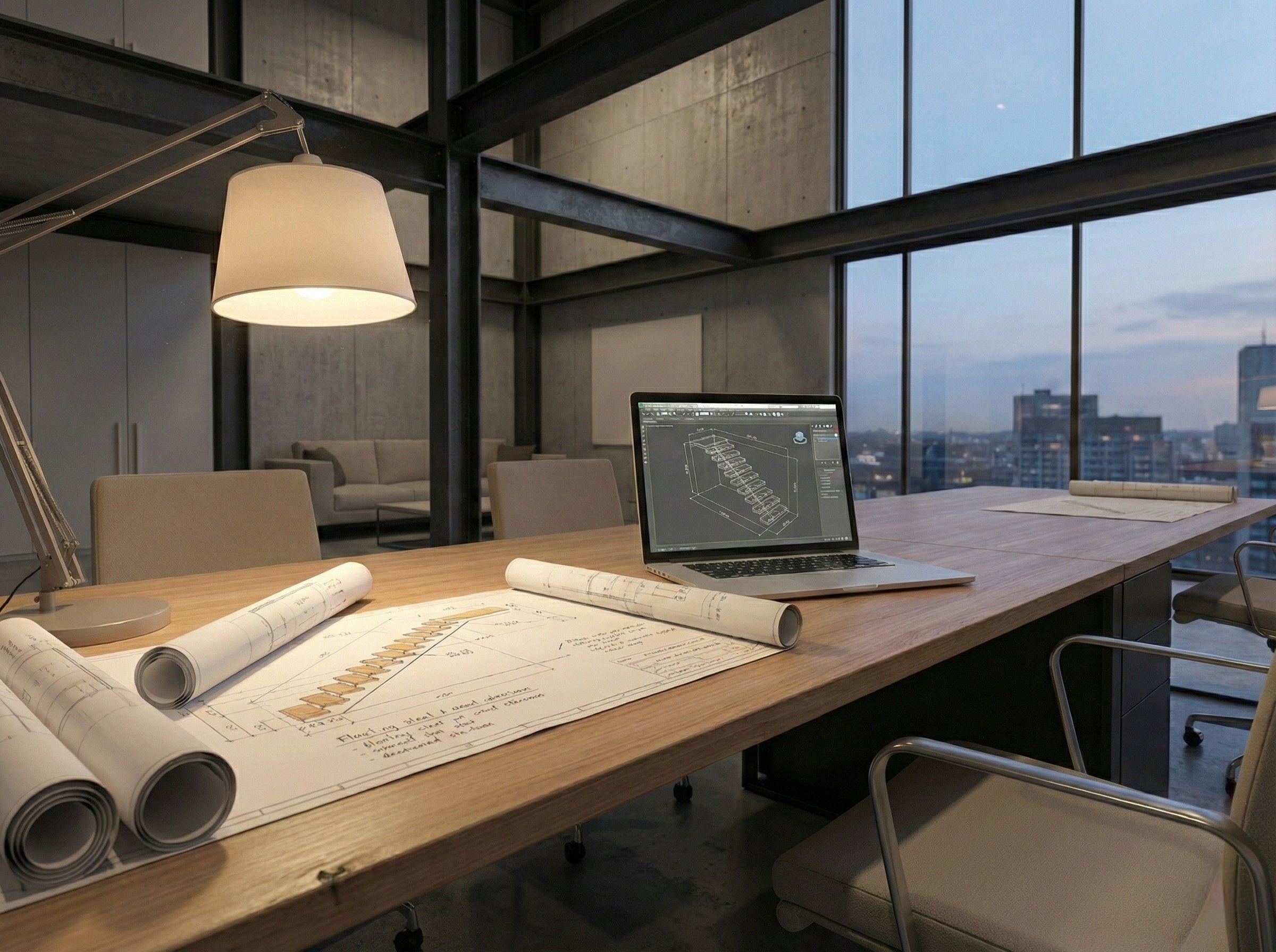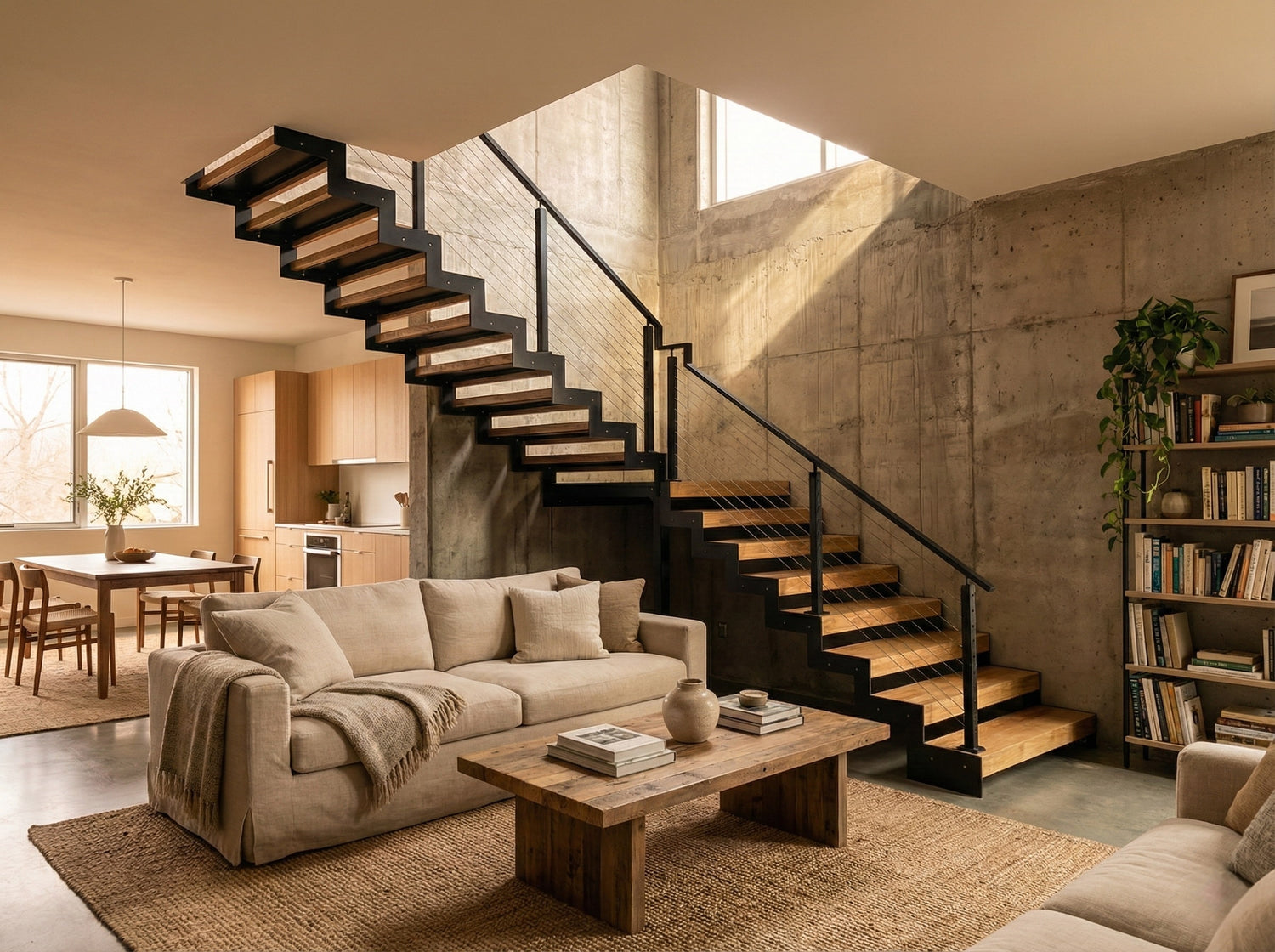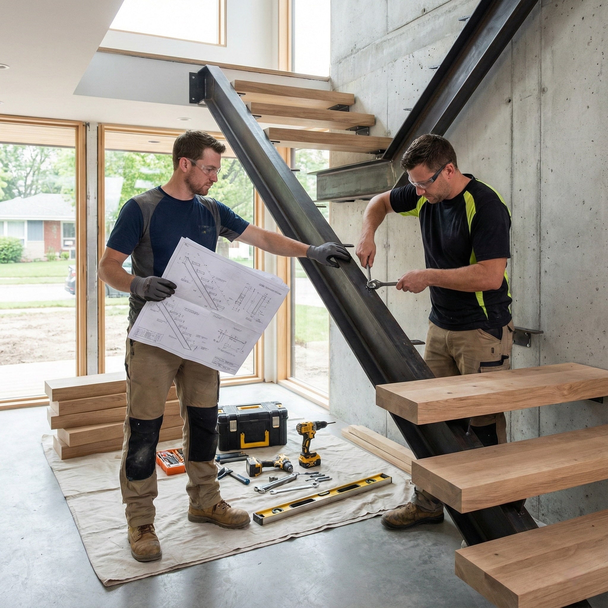 Floor-to-floor height, tread width, and structural load requirements influence design and fabrication.