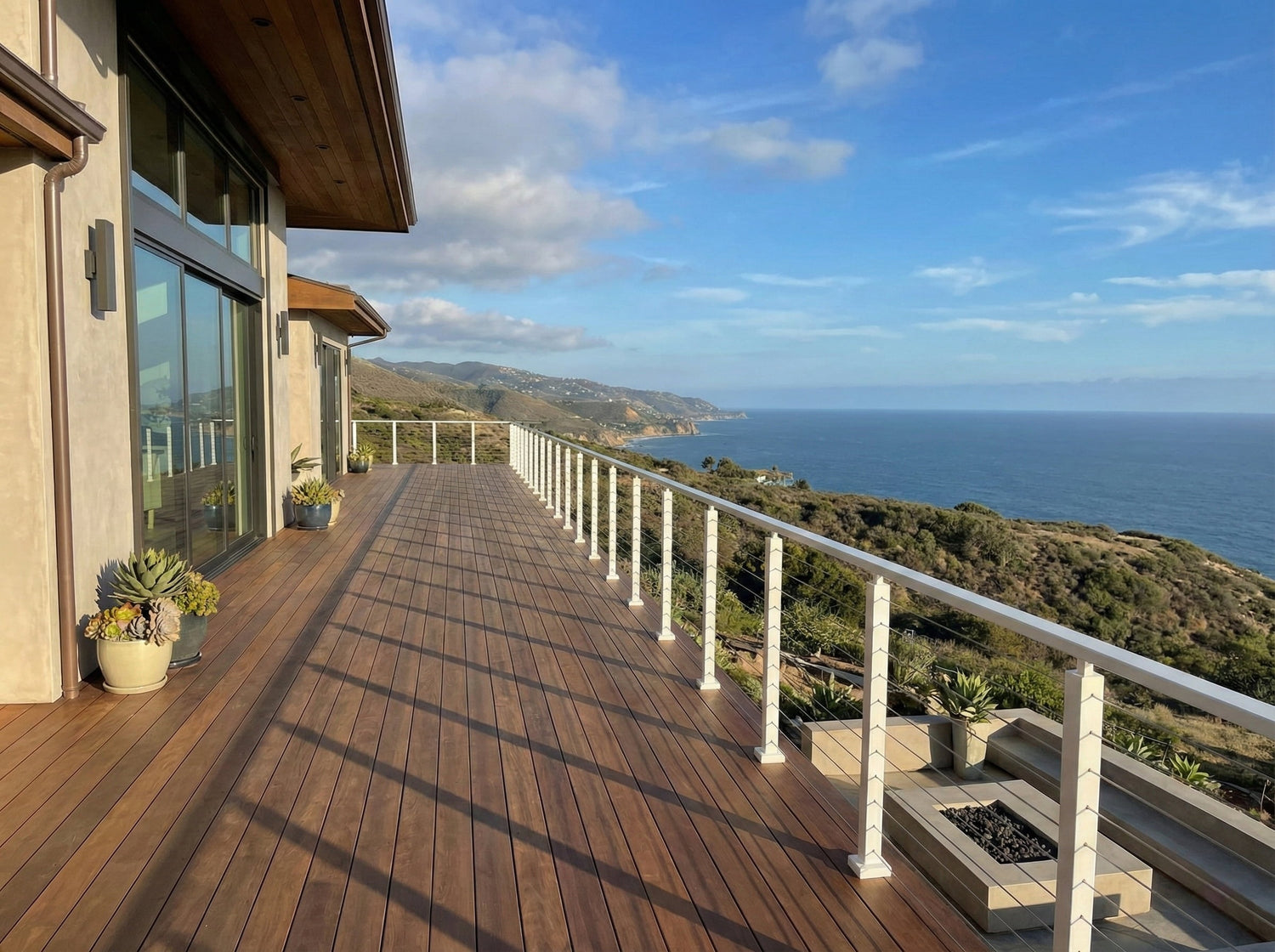 Railing systems are priced per linear foot based on materials, layout, and mounting conditions